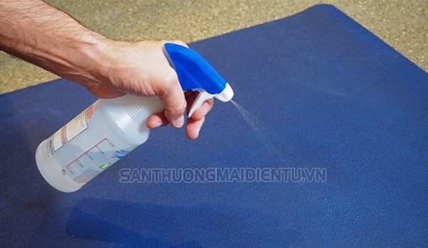 - Trải thảm yoga ra sàn nhà tắm rồi đổ hỗn hợp vừa pha lên 2 mặt của thảm.