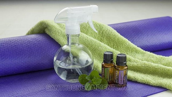 - Chuẩn bị hỗn hợp gồm: ¼ chén giấm trắng, ¾ nước ấm, 1 thìa bột nổi và 10 giọt tinh dầu trà.
