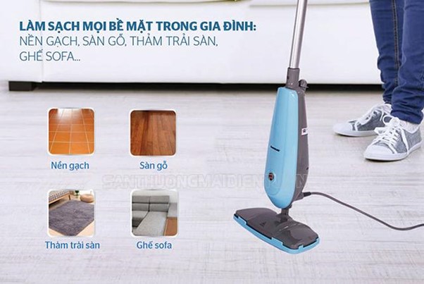 - Hơi nước nóng do máy tạo ra làm sạch được mọi bề mặt như: sàn gỗ, thảm, ghế sofa… Bà nội trợ sẽ không còn lo bụi bẩn sót lại, không gian sẽ được trả lại sự thoáng mát, sạch sẽ.
