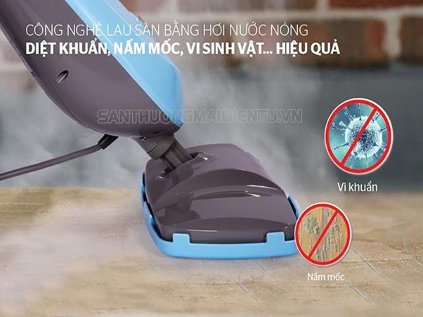 - Chiếc máy này hỗ trợ làm sạch bằng hơi nước nên không cần phải dùng đến chất tẩy rửa. Hơn nữa, hơi nước nóng trong máy lại có khả năng diệt sạch đến 99% vi khuẩn và vi trùng.