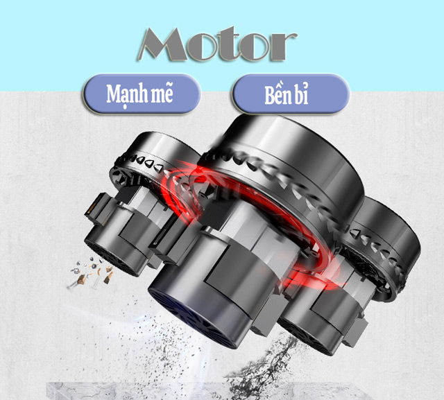 3 mô tơ tổng công suất lớn cho lực hút đều, mạnh